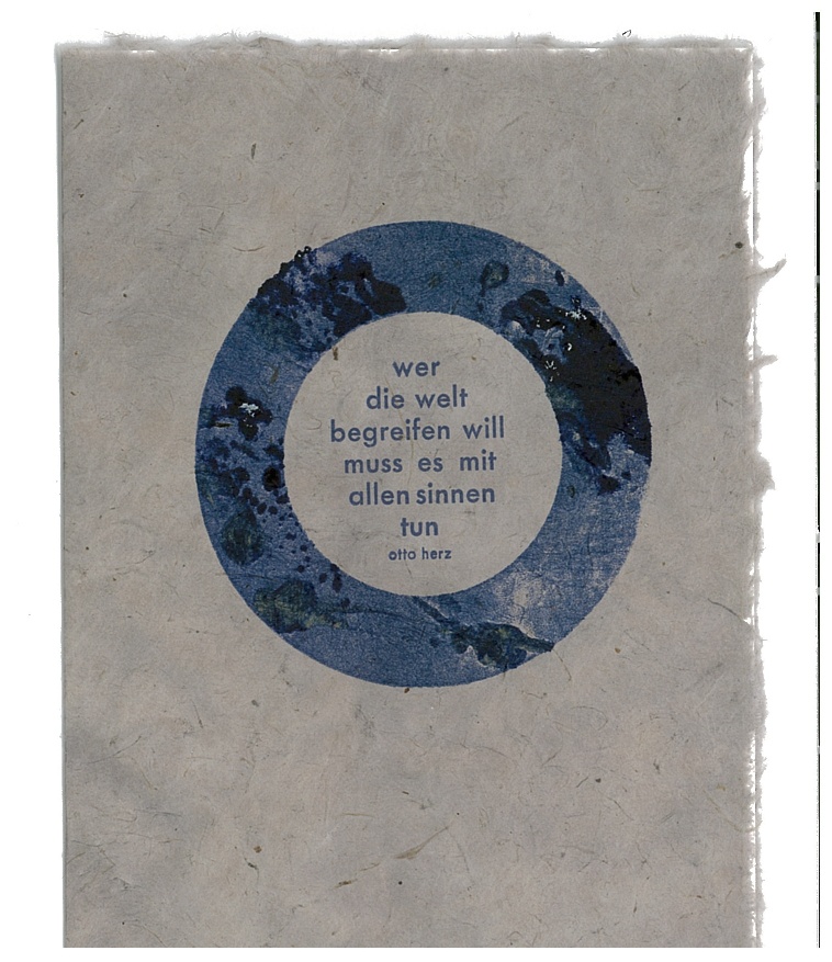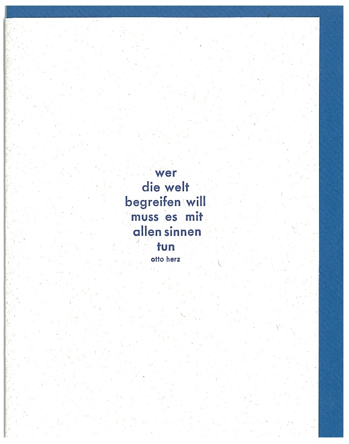 In der Münchener Handsatzwerkstatt entstehen neben Büchern mit literarischen Texten und Gedichten, Leporellos und Einblattdrucken auch Karten und Plakate mit Texten von Otto Herz.